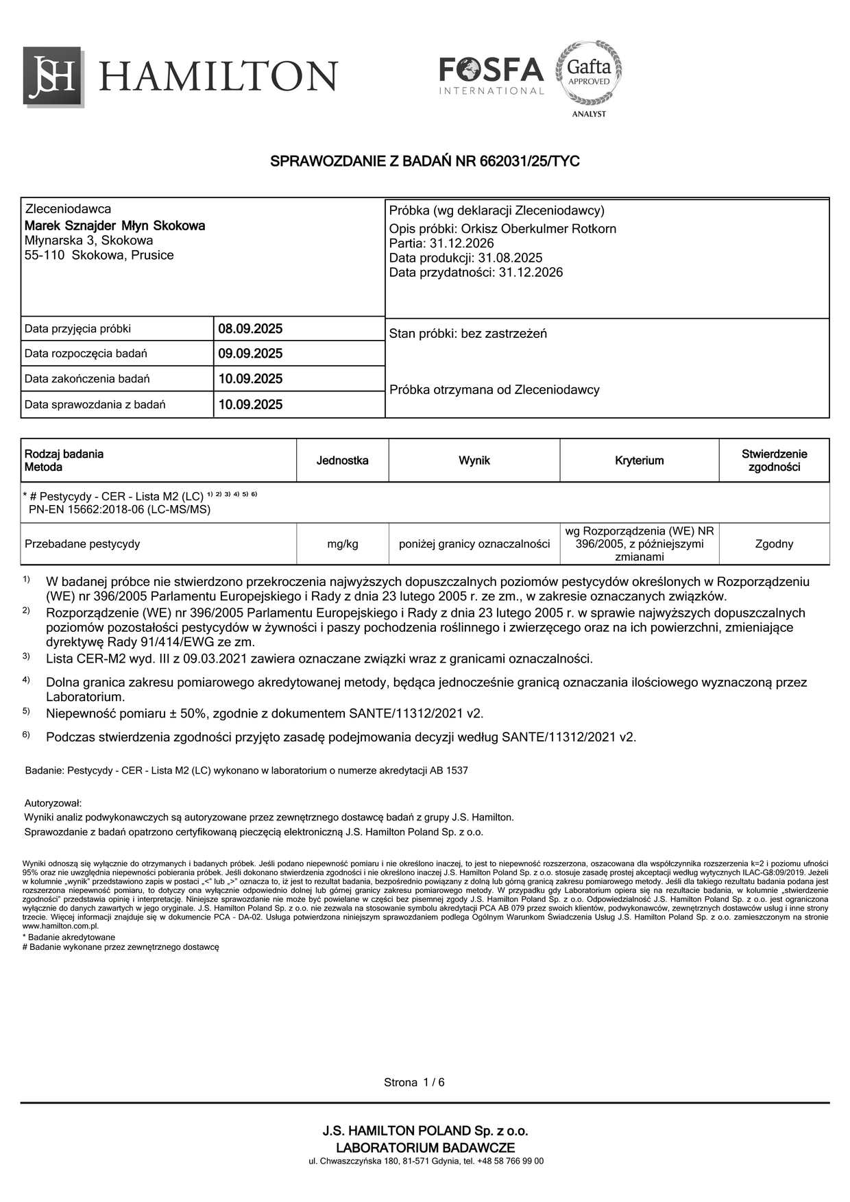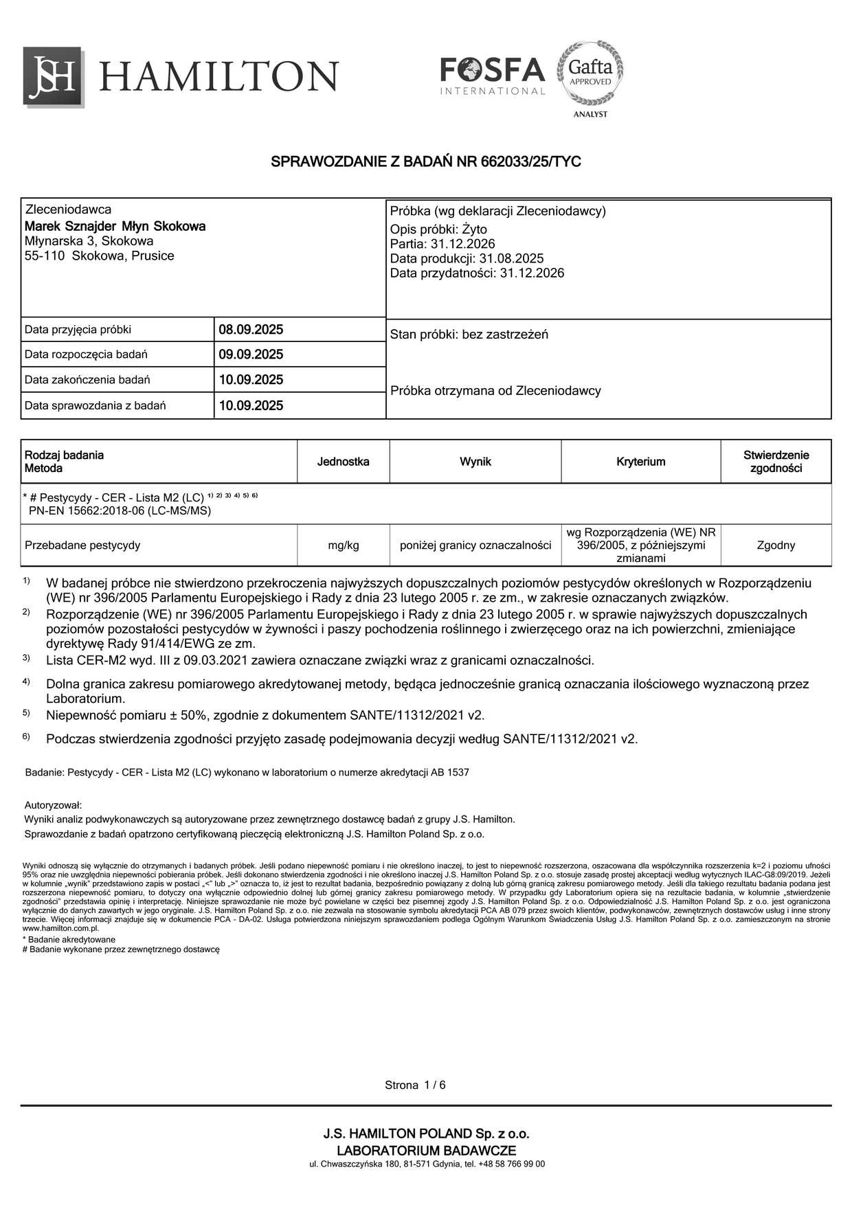 Zboża, z których korzystamy są przebadane na obecność 356 substancji czynnych pestycydów lub posiadają certyfikat ekologiczności.