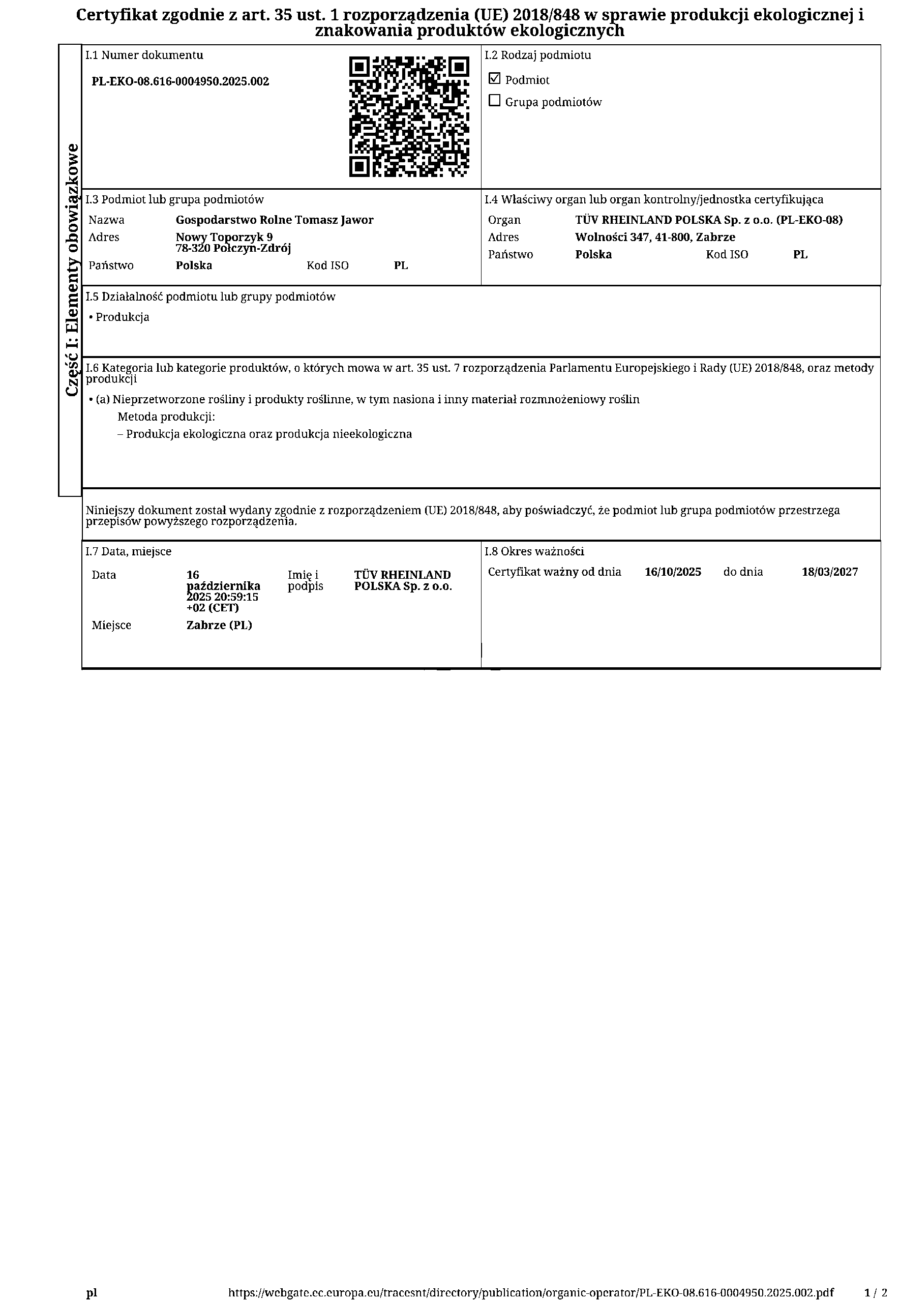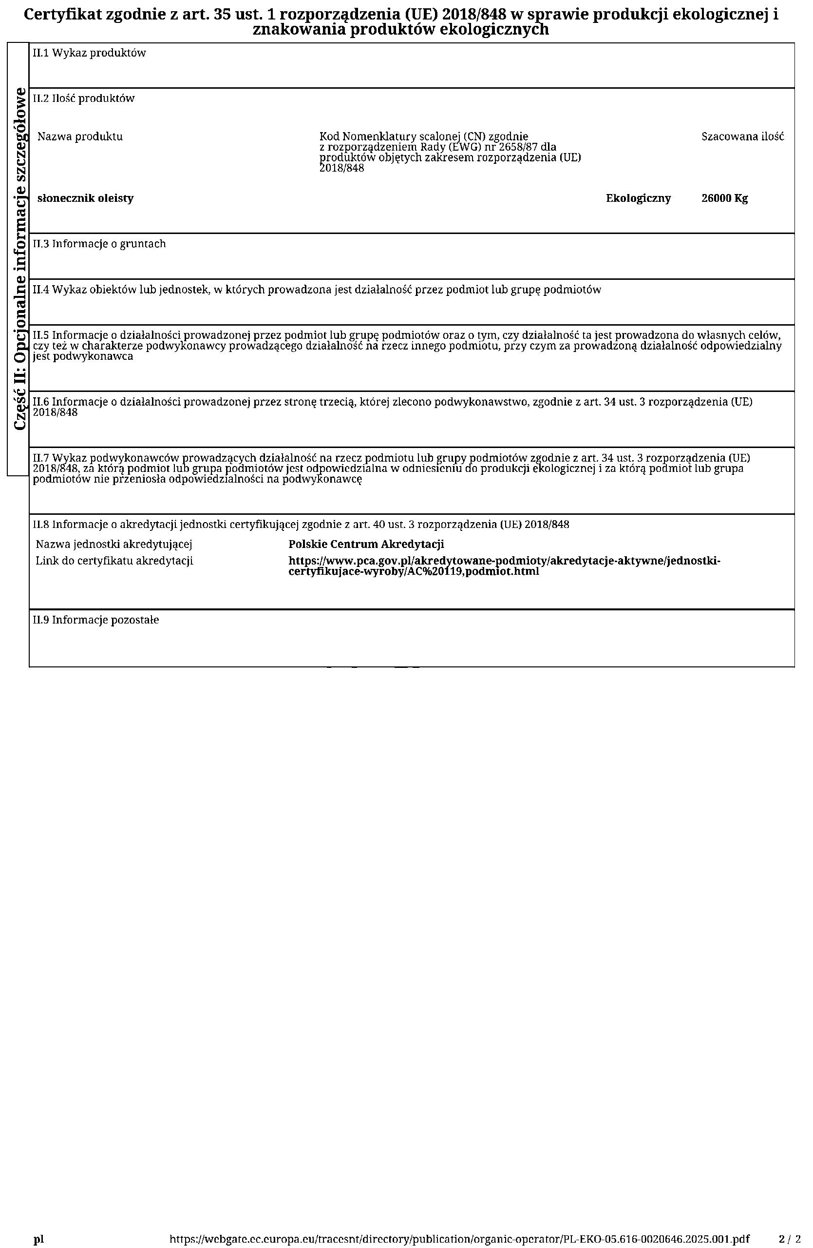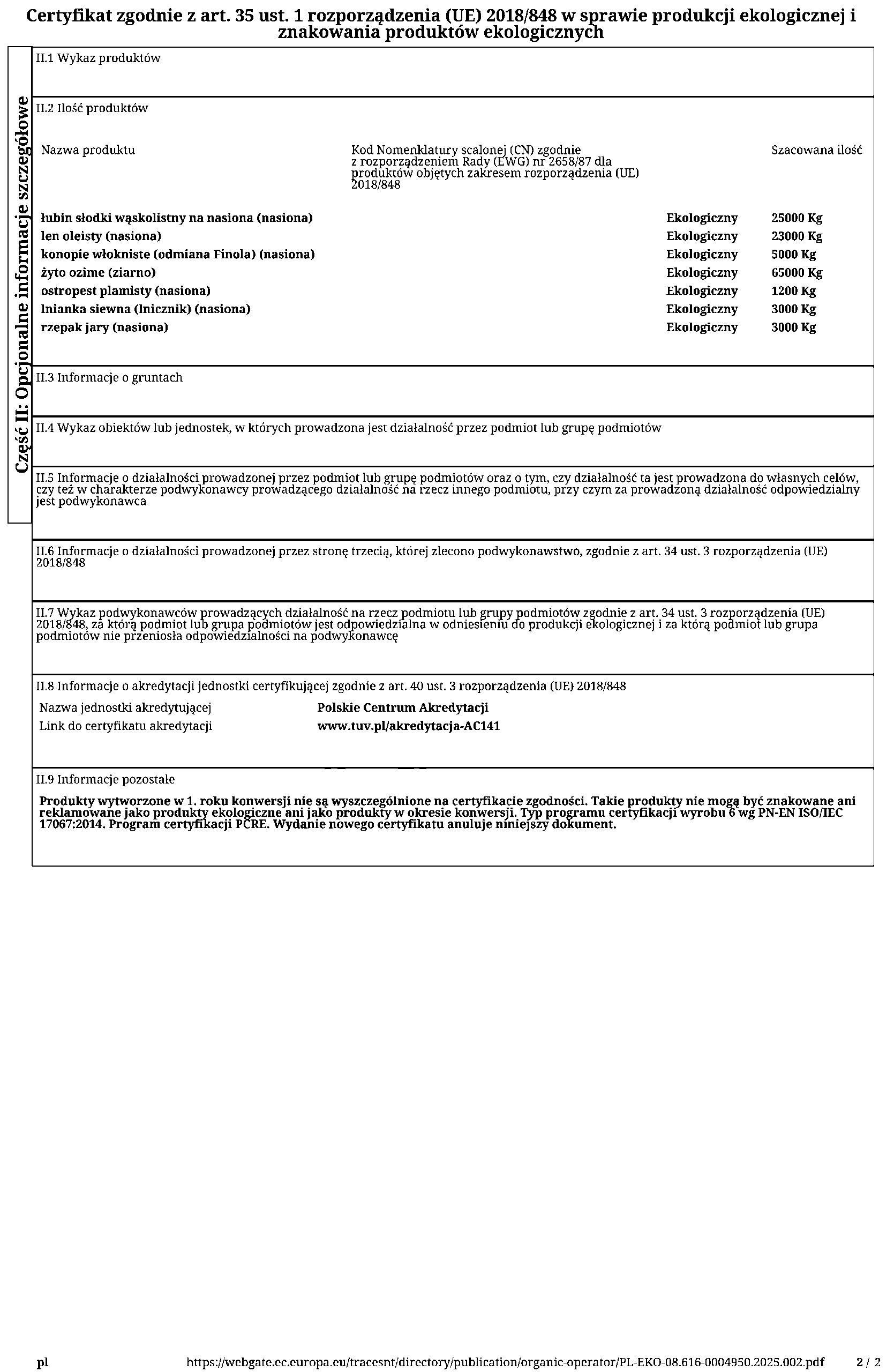 - Orkisz Oberkulmer Rotkorn – Gospodarstwo Rolne Łukasz Lichota (Szczedrzykowice Stacja)